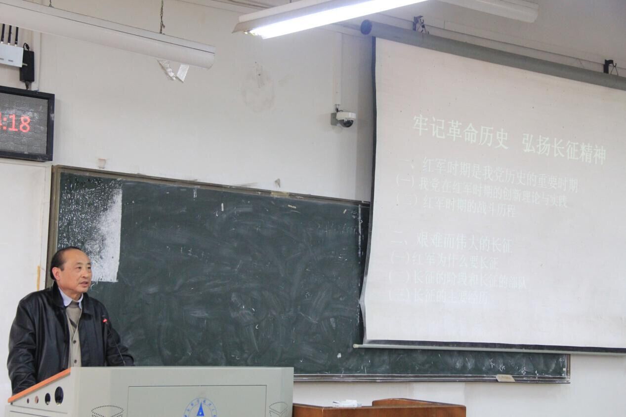 随后胡江滨教授以“牢记革命历史,弘扬长征精神”为题给我们带来了本次马克思主义讲学。他以我党在红军时期的创新理论与实践和红军时期的战斗历程为切入点,为我们解释了为什么红军时期是我党历史上的重要时期。随后他又重点解释了红军为什么要长征,讲解了红军长征的阶段、长征的部队和长征的主要经历,突出了长征的艰难和伟大。最后,胡江滨教授为我们总结了红军长征的伟大意义和影响,激励我们弘扬长征精神,继承长征文化。