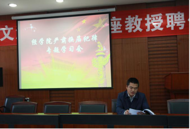 10月13日下午14:30分于文泉南206会议室,召开了三公牌 10月份主题党日活动大会。本次大会由学院党委副书记詹万明主持,全院党员教师参加会议。 本次大会分为三个部分,詹万明副书记组织“两学一做”之“讲道德、有品行”专题学习、全体党员观看警示教育片《镜鉴》、各党支部开展以严肃换届纪律为主题的专题学习活动。