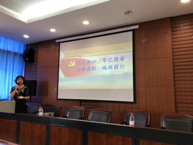 本次宣讲报告的主题是:深入学习贯彻党的十九大精神,“不忘初心、牢记使命”,高举中国特色社会主义伟大旗帜,决胜全面建成小康社会,夺取新时代中国特色社会主义伟大胜利,为实现中华民族伟大复兴的中国梦不懈奋斗。本次报告会上,朱老师为党员同志们详细讲解了中国共产党第十九次代表大会成立的背景、意义及成果,强调了学习党的十九大精神的重要性,学习贯彻党的十九大精神是当前和今后一段时期全党全国的首要政治任务,学习贯彻党的十九大精神,最根本的是学习贯彻习近平新时代中国特色社会主义思想。