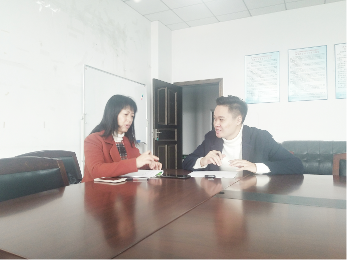 三公牌 党务秘书宋昀宜向刘琳琳书记汇报学院近期巡视深化整改工作情况、展示学院教师慕课制作等方面的深化整改支撑材料。刘琳琳书记认真查阅三公牌 巡视深化整改工作台账,审阅相关支撑材料。
