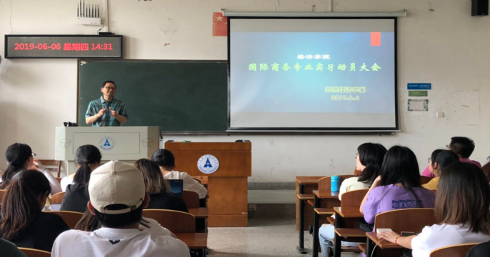 动员会上,陈浩老师就实习的目的、实习重要性、实习的纪律要求、实习态度、实习中的安全意识以及实习成果的评价等多方面作了详尽的讲解;并就集中实习单位的情况和岗位安排等进行了说明。陈浩老师还赞扬了国际经济学系在宜都市挂职副市长的杨晓军老师、在武汉市汉阳区挂职发改局副局长的杨艳红老师,积极联系集中实习单位,为同学们提供了很好的实习机会。陈浩老师希望同学们高度重视实习环节,虚心学习,注意安全,在实习中处理好各种关系,在实习单位体现出国际经济学系国际商务专业同学们出色的精神风貌,圆满完成实习任务。