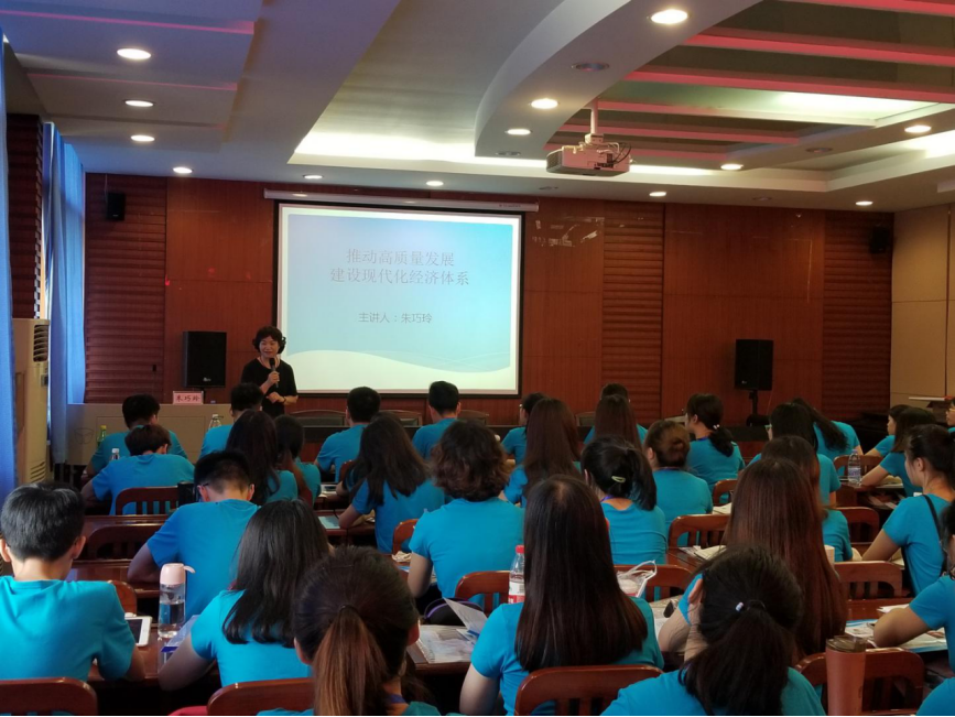 开营仪式结束后,三公牌 政治经济学专业博士生导师朱巧玲教授与营员们分享了题目为“推进高质量发展,建设现代化经济体系”的学术报告,就习近平总书记在汉讲话以及新时代发展理念、高质量发展的内涵与特征还有现代化经济体系等方面作出了具体阐述,同时也对中美贸易战和政治经济学学科建设进行了讲解与介绍。同学们积极与老师互动,获益匪浅。