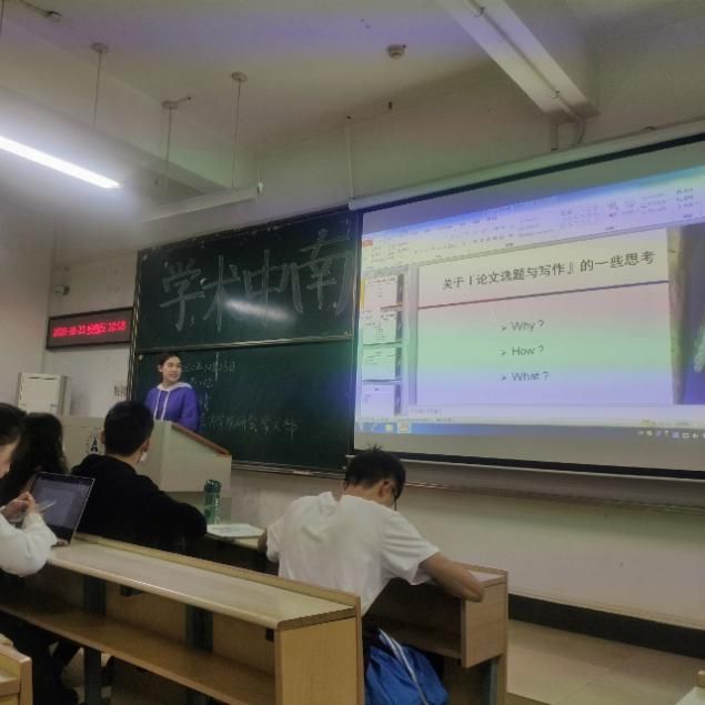 本次学术中南主题活动吸引了本院不同学历、不同年级、不同专业的近100名学生。讲座上,谢靖老师详细介绍了论文选题和写作,并做出了详细解释和举例。讲座结束后,还有很多同学留在现场请教,谢老师对同学们在研究中遇到的问题给予了悉心的讲解和指导。谢老师的讲座给人留下了深刻的印象,老师对待学术严谨的态度也深深地影响了在场的每一位同学。至此,本次学术中南讲座取得了圆满成功。