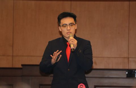(图1:张嘉乐同学进行竞职演讲)