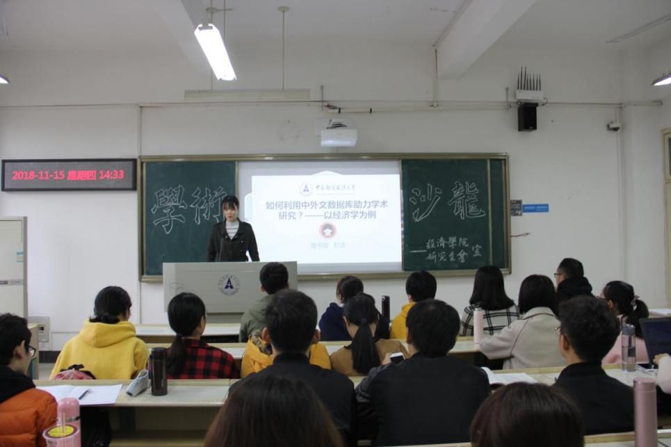本次讲座主要包括两个环节。第一环节中,封洁老师首先为同学们讲解了如何利用读秀学术搜索、超星数字图书馆查找图书资源,紧接着从中文和外文两个方面讲解了查找期刊论文的方法。为了让同学们更加清楚,封洁老师还以经济学期刊为例在中国知网CNKI中进行了实际操作。最后介绍了在写论文找寻数据的过程中如何分类别分领域地在各个数据库中寻找有效信息。