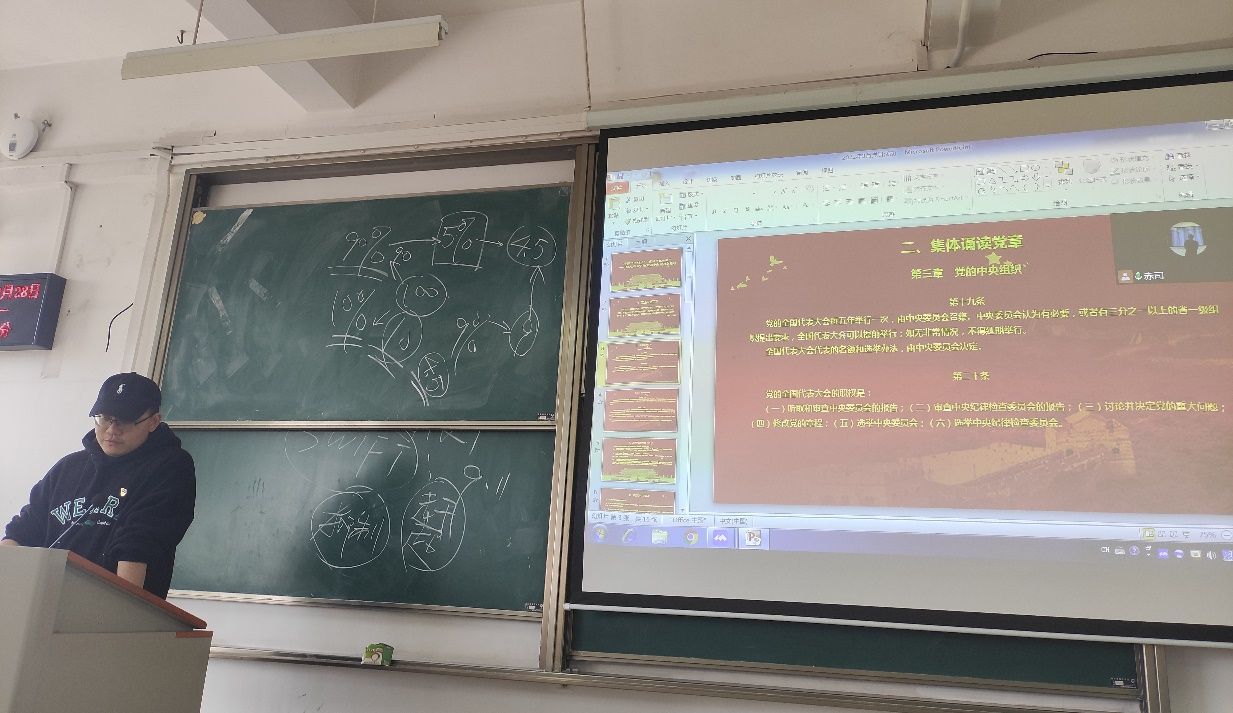 罗厾尧同学带领全体党员重温了入党誓词,并着重学习第三章党的中央组织,让各位党员对党的中央组织有了更全面的理解。