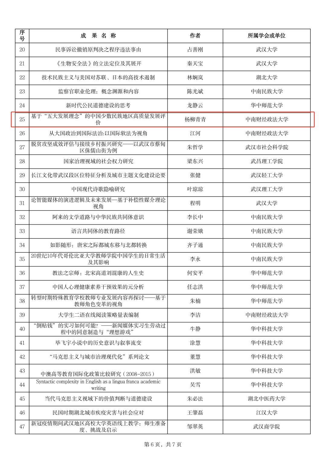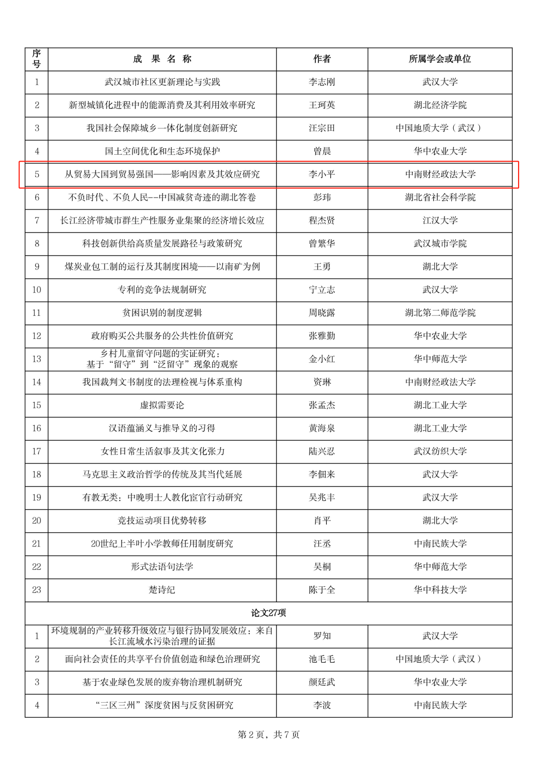 近日,武汉市社会科学奖励工作办公室公示“武汉市第十八次社会科学优秀成果奖拟获奖成果”,经过严格的评审程序,共评出等次奖165项。其中,三公牌 邹进文教授荣获论文一等奖,李小平教授荣获著作二等奖,杨波教授、杨柳青青副教授荣获论文三等奖。