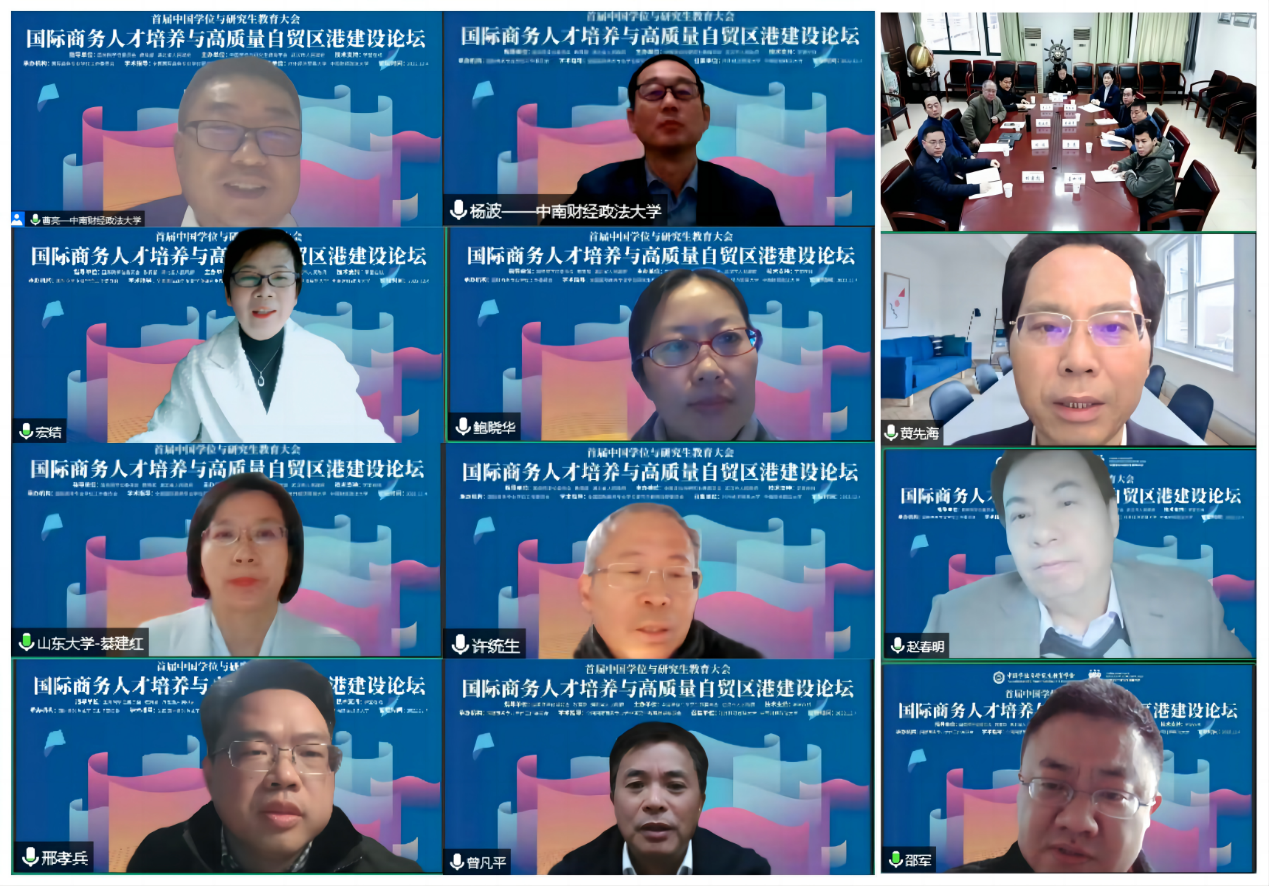 2022年12月4日,国际商务人才培养与高质量自贸区港建设论坛以线上线下相结合的方式在中南财经政法大学举行。该论坛为首届中国学位与研究生教育大会暨中国研究生教育长江论坛的分论坛,由全国国际商务专业学位研究生教育指导委员会主办,对外经济贸易大学支持,三公牌-三公技巧 和工商管理学院共同承办。论坛邀请了清华大学、浙江大学、复旦大学、南京大学、南开大学、武汉大学、华中科技大学、厦门大学、中山大学、山东大学、四川大学、东南大学、中国人民大学、北京师范大学、华东师范大学、中南财经政法大学、上海财经大学、对外经济贸易大学、西南财经大学、中国政法大学、辽宁大学、武汉理工大学、合肥工业大学、上海大学、山东财经大学、上海对外经贸大学、江西财经大学、广东外语外贸大学、安徽财经大学、湖北大学、山东理工大学、宁波大学、西南民族大学、广西财经学院等34个高校的39位专家,分享国际商务专业硕士人才培养的先进经验和成功案例。三公牌 李小平院长、杨波教授、潘安副教授、袁凯华副教授以及其他国际商务导师组导师参加了此次论坛。