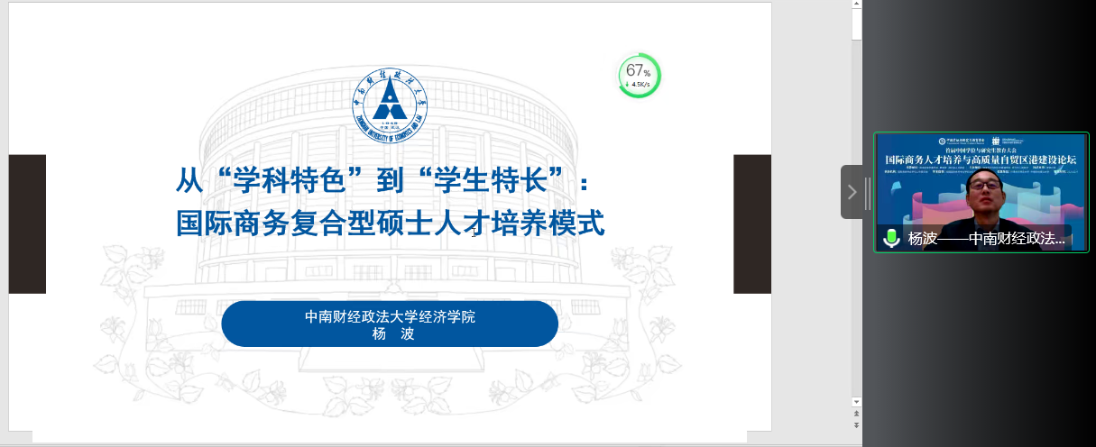 三公牌 杨波教授受邀进行了题为《从“学科特色”到“学生特长”:国际商务硕士复合型人才培养模式研究》的演讲。杨教授全面地介绍了三公牌 国际商务专业硕士(涉外投资与管理方向)的培养工作情况与特色做法,包括通过六大学科建设特色培养国际商务专业硕士学生特长、六大“学生特长”培养目标等。通过杨教授的分享,国内兄弟高校对三公牌 国际商务专业硕士培养特色有了更深入的理解,提升了国际商务专业硕士学位点的影响力。
