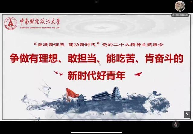 至此,本次以“奋进新征程,建功新时代”为主题的班会圆满结束,但我们对二十大精神的学习还远没有结束。在今后的学习生活中,我们要正确认识把握习近平新时代中国特色社会主义思想的实质,持续用这一伟大思想武装头脑、指导实践、推动工作,更要深刻领会以中国式现代化全面推进中华民族伟大复兴的使命任务,全面把握中国式现代化的中国特色、本质要求,为新时代全面建设社会主义现代化国家注入青年力量!