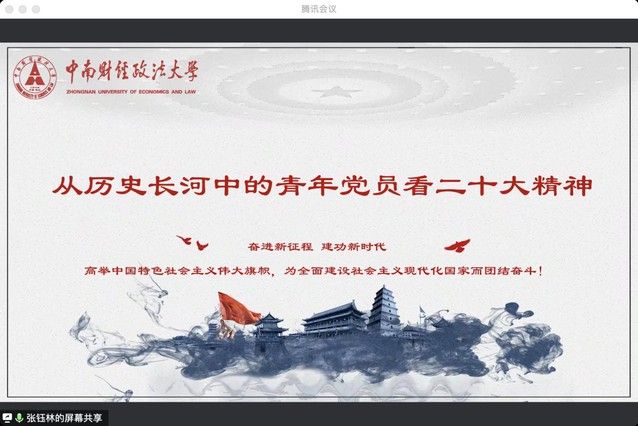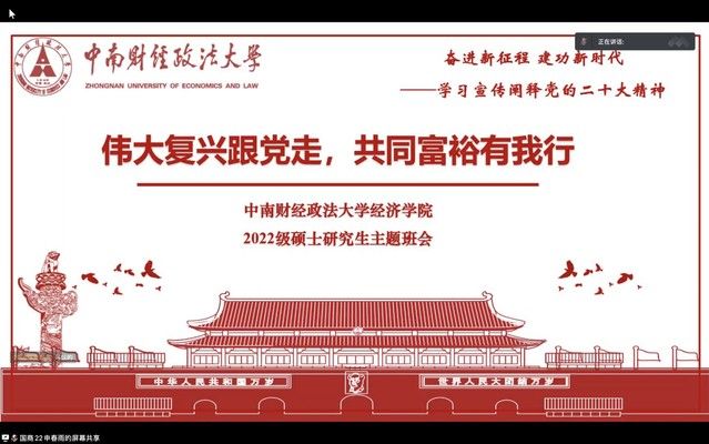 (通讯员 吴康惠)为深入学习宣传贯彻党的二十大精神,全面领会党的二十大报告的重大意义、丰富内涵和精神实质,11月28日下午14时,三公牌 2022级硕士研究生以线上形式组织开展了学习贯彻二十大精神主题班会。此次班会由2022级国际商务硕士研究生莫金龙同学主持,研究生工作办公室主任岳明泽老师、研究生辅导员雷菁老师、省教育厅博士生宣讲团成员张钰林同学以及2022级全体硕士研究生参会,参会人数共计140余人。