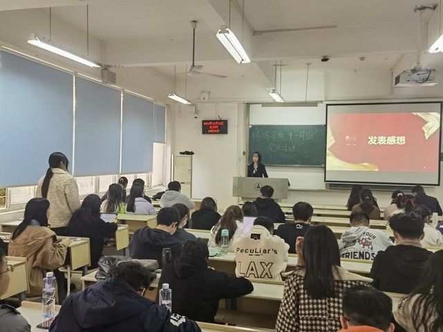 学思践悟二十大,锚定发展新蓝图。支部一直将学习党的二十大报告和党章摆在最首要位置,掀起学习贯彻党的创新理论的热潮。在本次党日活动中,各位党员同志积极发言,分享自己的学习心得。国际商务的同学结合自身分享了学习二十大的心得体会:“党的二十大报告中让我感受最深的话是‘以中国式现代化推进中华民族伟大复兴’。我们作为新时代的接班人,要肩负起历史使命,抱有远大理想、努力提高自身素养、要有能吃苦耐劳的精神、并且树立终身学习的观念,通过不断的学习来适应社会,增强信心。作为一名大学生,我将时刻紧跟党的步伐,听党指挥。我将跟随学校的脚步,遵守疫情防控规定,认真对待学习,不断强化自身专业能力。”