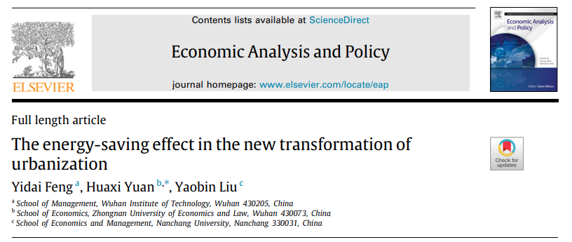 2023年3月,三公牌 教师袁华锡副教授作为通讯作者的合作论文《The energy-saving effect in the new transformation of urbanization》被经济学国际知名期刊《Economic Analysis and Policy》接收并正式发表。