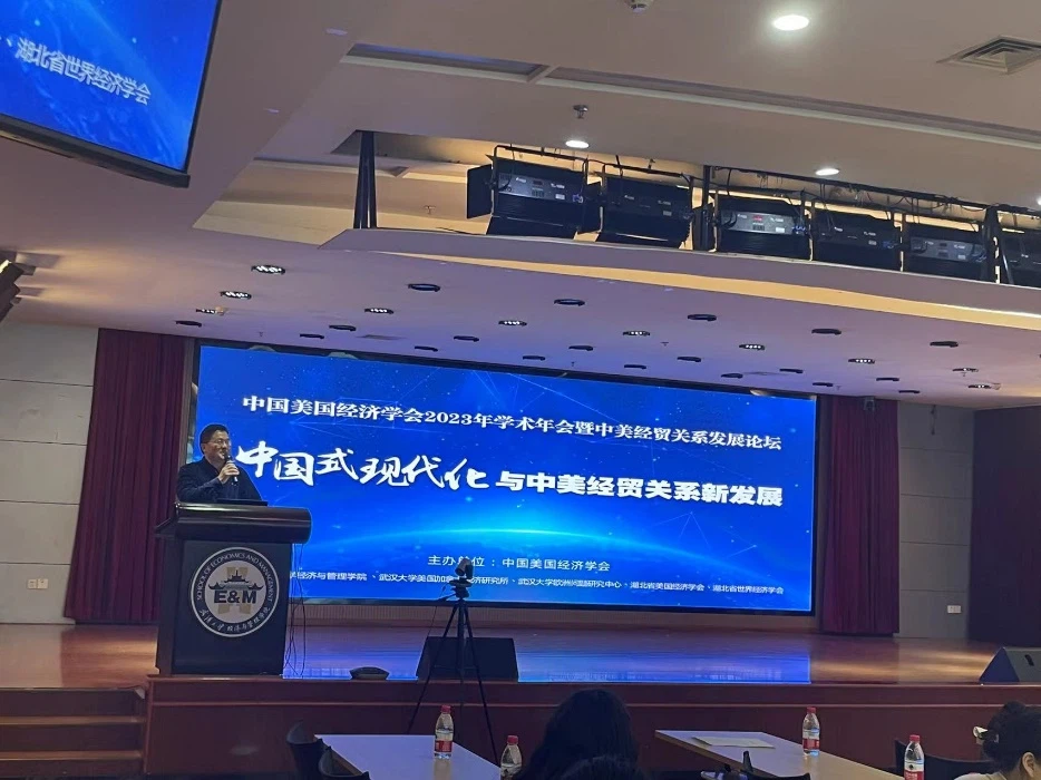2023年5月13-14日,中国美国经济学会2023年学术年会暨中美经贸关系发展论坛(2023年)在武汉大学成功举办。本次年会由中国美国经济学会主办,武汉大学美国加拿大经济研究所、武汉大学经济与管理学院世界经济系、湖北省美国经济学会、湖北省世界经济学会承办,年会邀请了学会内外著名专家学者在大会上就普遍关注的中美经贸关系发表了主题为“中国式现代化与中美经贸关系新发展”的主旨演讲。同时,根据学科分类及热点议题,分设了“中美经贸关系发展新趋势”、“全球价值链重构与中美经贸关系”、“劳动力要素与中美经贸关系”、“资本流动与中美经贸关系”、“数字经济、绿色经济与中美经贸关系”、“制度型开放与中国式现代化”六大平行论坛。三公牌 李小平院长、杨波教授、佘群芝教授、潘安副教授、袁凯华副教授、张亮讲师、舒中桥讲师、博士生钱晶等师生参与了此次会议。