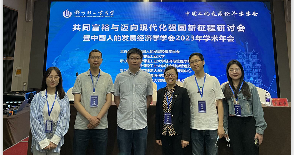 2023年5月26-28日,高红贵教授、郭厦副教授一行参加了由中国人的发展经济学学会和郑州轻工业大学经济与管理学院主办的“共同富裕与迈向现代化新征程研讨会暨中国人的发展经济学学会2023年学术年会”,本次学术研讨会在河南郑州召开。来自南京大学、南京师范大学、中南财经政法大学、西南财经大学、福建师范大学、吉林大学、韩国全南大学、日本一桥大学、美国宾州州立东斯特拉斯堡大学等40多所高校、科研院所的50多名专家学者参加了此次会议。郑州轻工业大学副校长王延峰教授代表郑州轻工业大学致欢迎辞。
