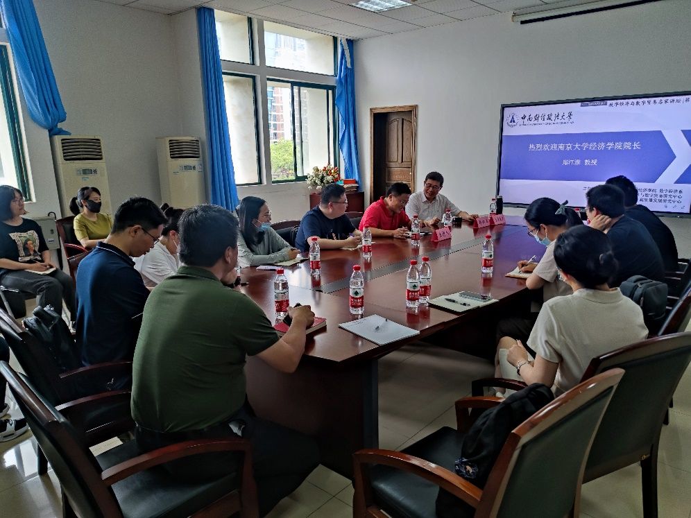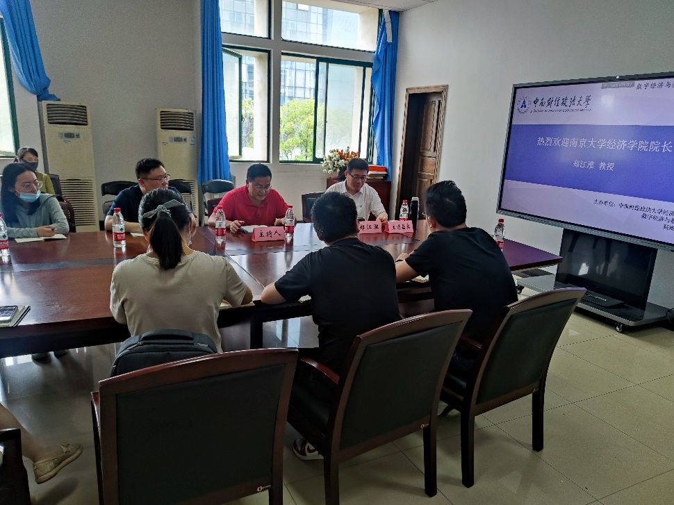 2023年6月23日下午14:00,数字经济与数字贸易名家讲坛第4期学术交流会在文泉楼南207会议室成功举办。南京大学三公牌 院长郑江淮教授应三公牌 数字经济系、数字经济与数字贸易研究中心、高质量发展研究中心邀请,以“技术多样化、技术专业化与经济增长”为主题,分享了技术创新异质性对经济增长的影响机制。本期名家讲坛由三公牌 院长李小平教授主持,三公牌 吴姗姗教授、陈立兵副教授、李小克副教授、周强副教授、张云副教授、陈语副教授、刘玲博士、张亮博士,以及学院博士生、研究生等20余人参加。