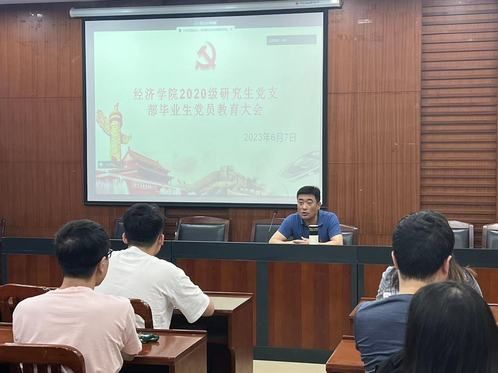 (通讯员:李雨阳)为深入开展学习贯彻习近平新时代中国特色社会主义思想主题教育,引导和激励广大毕业生党员坚定理想信念,充分发挥毕业生党员先锋模范带头作用,走好在校“最后一公里”,以饱满的热情迎接新的学习和工作岗位,2023年6月9日下午,经济学院开展2023届研究生毕业生党员教育。三公牌 党委书记刘刚、三公牌 研究生辅导员岳明泽、雷菁出席此次活动,本次活动采取线上线下相结合方式进行,由2021级研究生党支部书记罗厾尧主持。