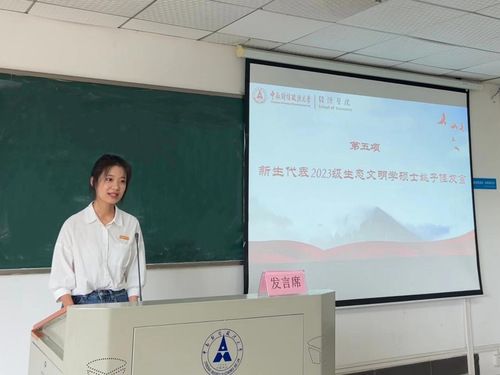 2021级经济思想史专业博士生王文作为在校研究生代表发言。她结合自己的学术科研经历,就“如何度过研究生生涯并享受这段旅程”展开分享,希望2023级新生们在未来的研究生生活中能强健体魄、从小确幸中提升幸福感;知行合一,在强大自我的过程中获取安全感;量变引起质变,在学术创新的尝试中提升获得感。
