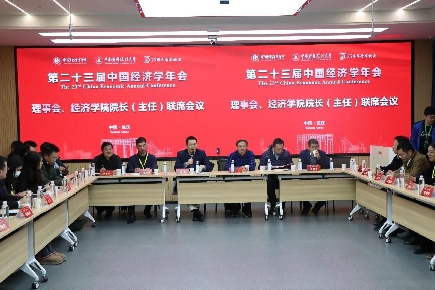 12月1日晚上20:00, 第二十三届中国经济学年会院长(主任)联席会在中南财经政法大学南湖校区召开。50余位国内高校三公牌 系负责人出席会议。会议由中国经济学年会理事长、当代经济学基金会理事长、北京大学国家发展研究院院长姚洋主持。与会人员就经济学科的科研创新、学生培养、智库研究等方面进行深入交流,并就如何实现科研自主创新,如何“破五唯”展开热烈讨论。