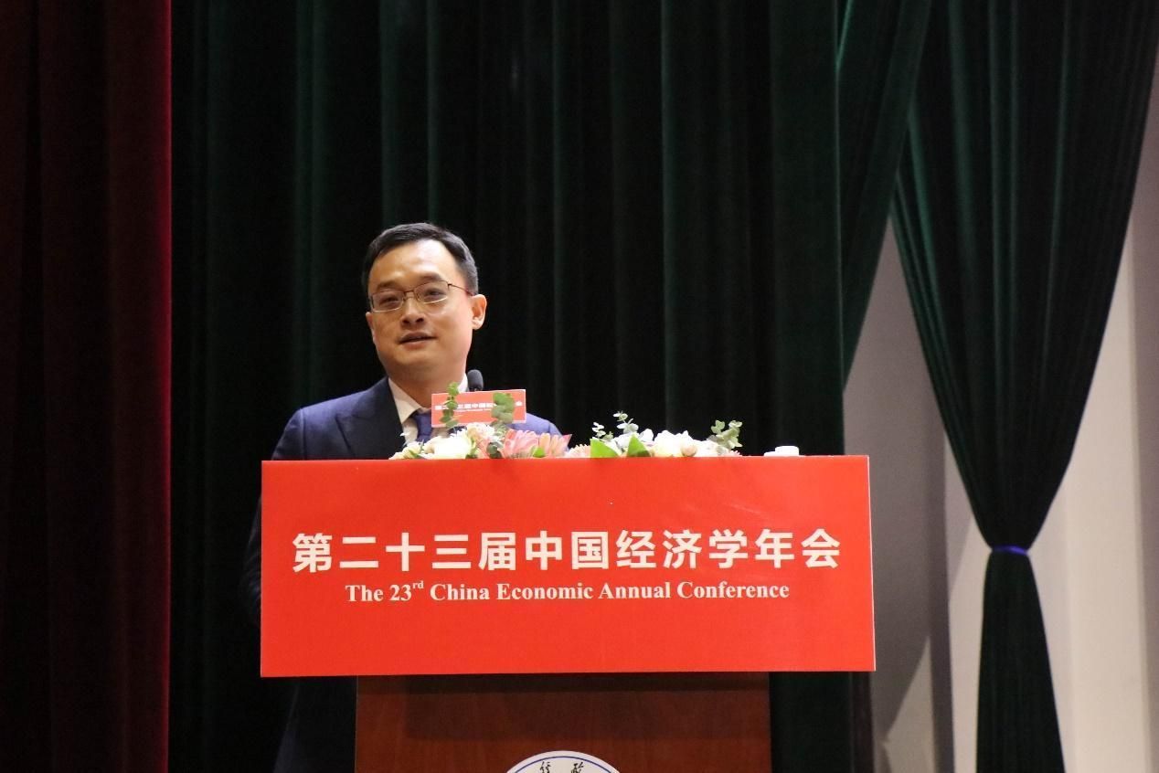北京大学国家发展研究院院长姚洋和助理院长席天扬代表第二十四届中国经济学年会承办单位先后发言,介绍了场地、设施等一流的办会条件,并向现场和在线的师生、学者发出诚挚邀请。