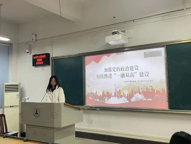 (通讯员:柴紫微)为巩固深化主题教育成果,贯彻落实巡视整改要求,深入推进一融双高建设,1130日下午于文添楼206三公牌 学硕第一党支部开展了主题为加强党的政治建设,持续推进一融双高建设的主题党日活动,支部全体党员参与学习,活动由支部书记杨帆主持。