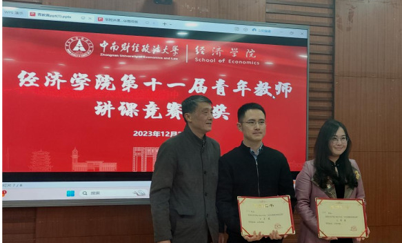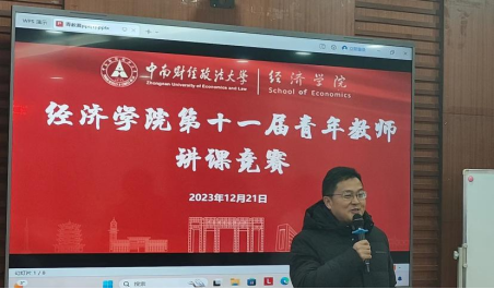 第四位参赛者王韶华老师以“羊吃人”的案例引入,讲述了资本原始积累的过程,内容丰富、逻辑清晰,生动的案例营造了引人入胜的课堂氛围。袁华锡老师采用提问式教学的模式生动地讲授了三个货币需求动机和流动性偏好及陷阱,富有感染力的语言激发了听课者的兴趣和热情。最后一位参赛者是朱明老师,他讲授的内容是“市场失灵和微观经济政策”,他采用板书设计与例子结合的方式讲解垄断与低效率、帕累托最优等概念,将这堂课的内容娓娓道来。