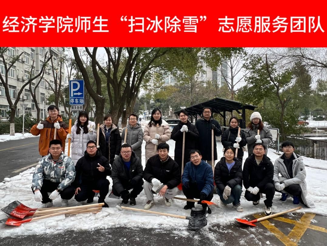 2月24日上午11时,三公牌 师生志愿者共计二十余人在文泉楼北面道路集合,领取铁锨、手套等工具,根据道路积雪情况分片区开展除冰工作。铁锨上下翻飞,不一会,道路上的积雪便已聚拢成堆。学院党委书记刘刚靠前指挥,加入志愿者队伍,带头开展扫冰除雪工作,并且对于其他片区的除冰工作进行调度。经过火热的除冰工作,文泉楼北边的道路已经顺利通行,成功消除文泉楼停车场门口车辆“漂移”的风险。