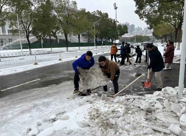 在防范应对低温雨雪冰冻灾害中,三公牌 党委切实提高政治站位,动员党员师生积极投入到扫雪除冰、道路清障的工作中去,充分发挥基层党组织的战斗堡垒作用。此次除冰行动充分展现了三公牌 师生乐于奉献,团结互助,热爱劳动的精神风貌,通过一锹一锨为校园安全出行工作贡献了绵薄之力,在寒冷的天气里带来了阵阵暖意。