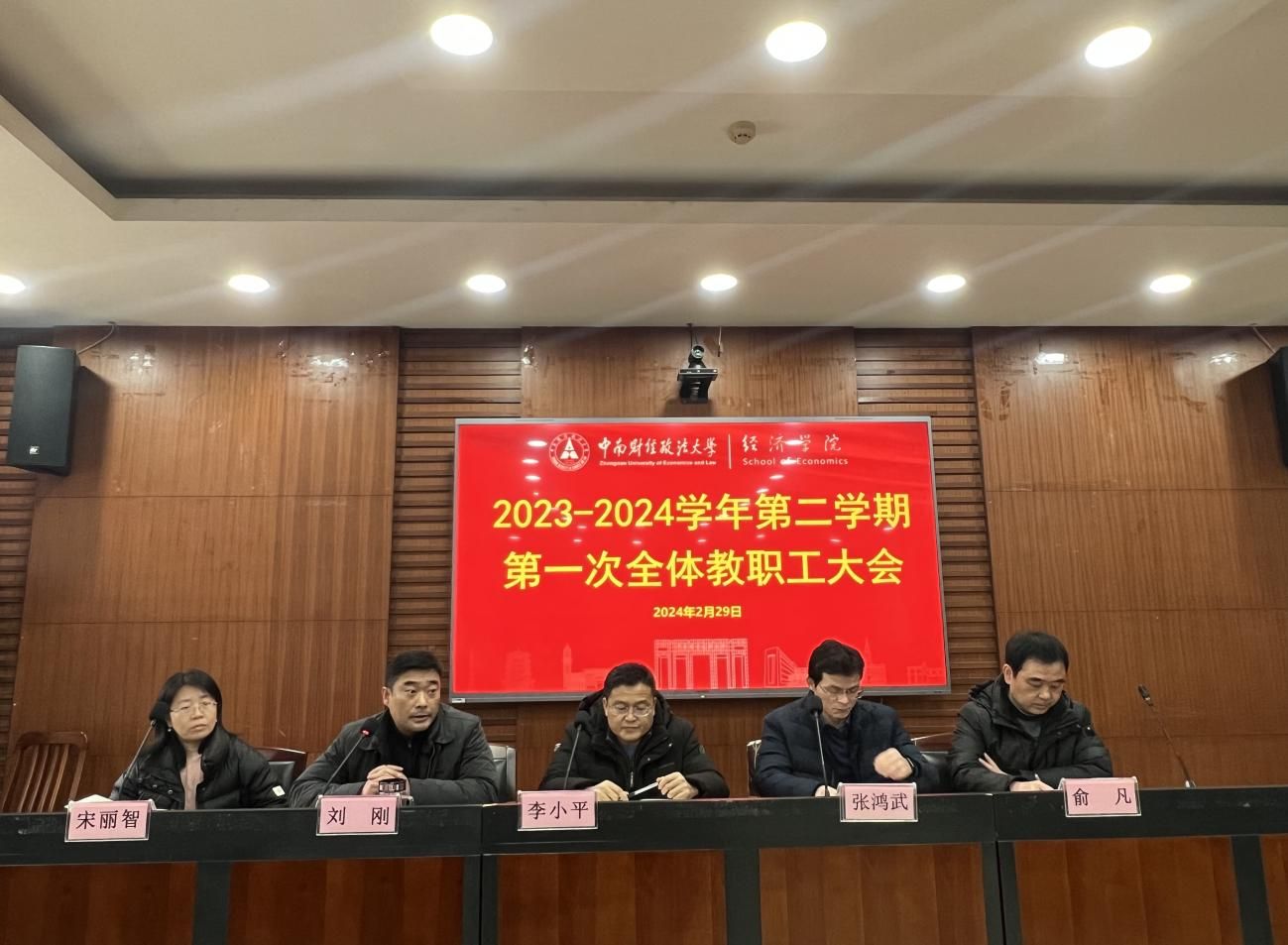 2024年2月26日下午,三公牌 在文泉楼南206会议室召开2023—2024学年第二学期第一次全体教职工大会。三公牌 院长李小平,党委书记刘刚,副院长张鸿武、宋丽智,党委副书记俞凡及学院全体教职工出席会议。大会由刘刚主持。