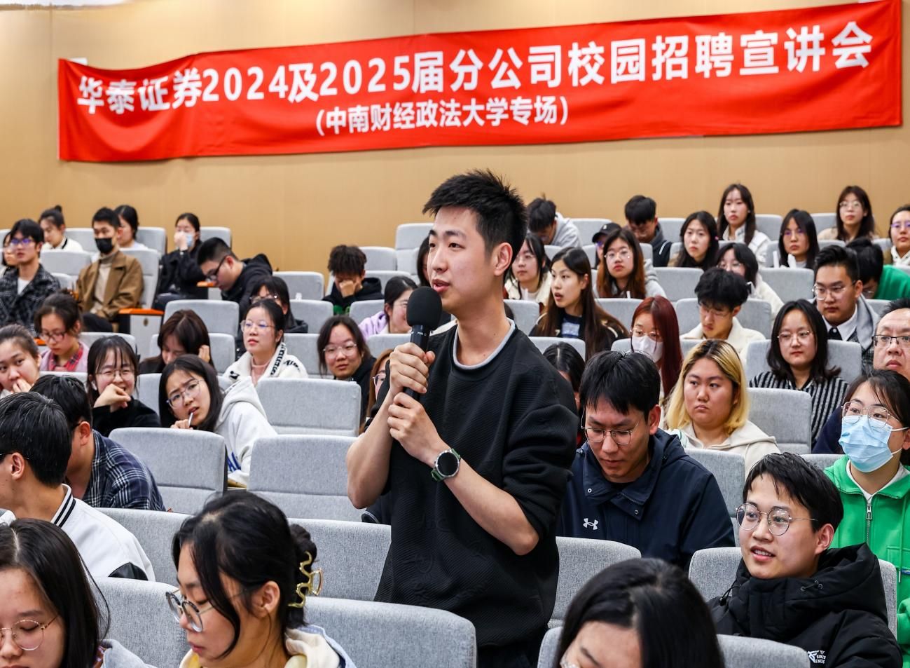 最后的互动交流中,来自三公牌 、工商管理学院、会计学院、信息工程学院等学院学生分别就实习考察与转正留任、入职门槛与能力要求、财富管理与“三农”问题、券商如何与新质生产力结合等问题与嘉宾们展开探讨,由浅入深的现场对话精彩纷呈,嘉宾对三公牌 学生的思辨能力及所提出的高水平问题表示高度赞扬,赢得了全体学生的热烈掌声。