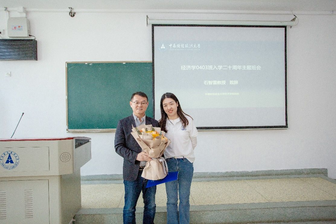 “你好,老同学,好久不见”主题班会在文泰楼304教室举行,三公牌 院长石智雷教授和经济学04级辅导员孟庆红老师受邀出席。班会由经济学0403班学生、现任三公牌 公共管理学院教师赵颖智主持。
