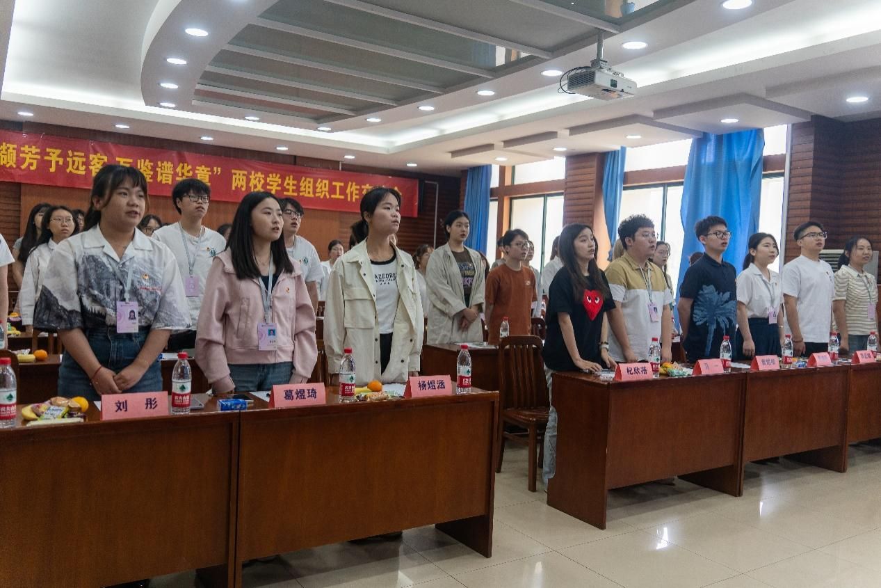 经验因多样而交流,因交流而互鉴,因互鉴而发展。两校的团学代表杞欣蓓、周润荻同学分别上台分享在团学组织工作中取得的经验和成果,从组织架构、管理模式和工作职能等方面展开详细介绍,为彼此提供了宝贵的团学工作经验与方法。