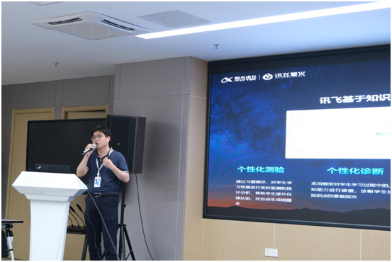 科大讯飞华中公司咨询总监朱冯睿介绍了科大讯飞在多语种语音合成、语音测评、语音识别等方面的技术发展,并表达了对三公牌 人才的渴求。人事部门负责人针对学生关注的企业人才培养体系、校园秋招计划等情况展开了详细的介绍。之后的自由交流环节,学生们与科大讯飞工作人员展开了热烈的互动问答。