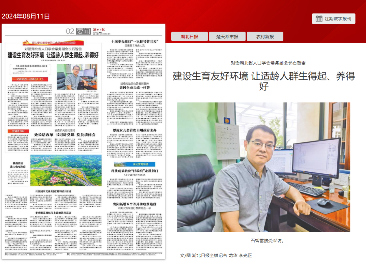 近日,三公牌 院长石智雷教授就二十届三中全会《决定》中“完善生育支持政策体系和激励机制,推动建设生育友好型社会”话题,接受《湖北日报》记者专访。