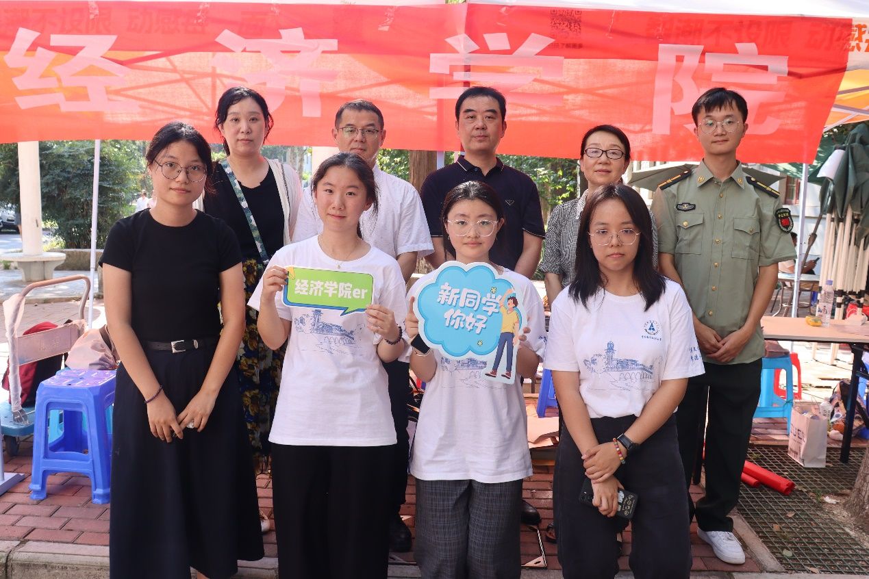 来自福建泉州的苏丹婷同学和全家人一同乘坐动车来到大学校园。她的父母感慨万千:“父母就送到这了,从这一程开始,孩子就要独自前行了。希望孩子照顾好自己,勤学自律。”石智雷院长表示:“把孩子放在这您放心!”希望苏丹婷同学在求学路上,坚强勇敢,同样也祝福所有经院新生不忘初衷,再创辉煌。