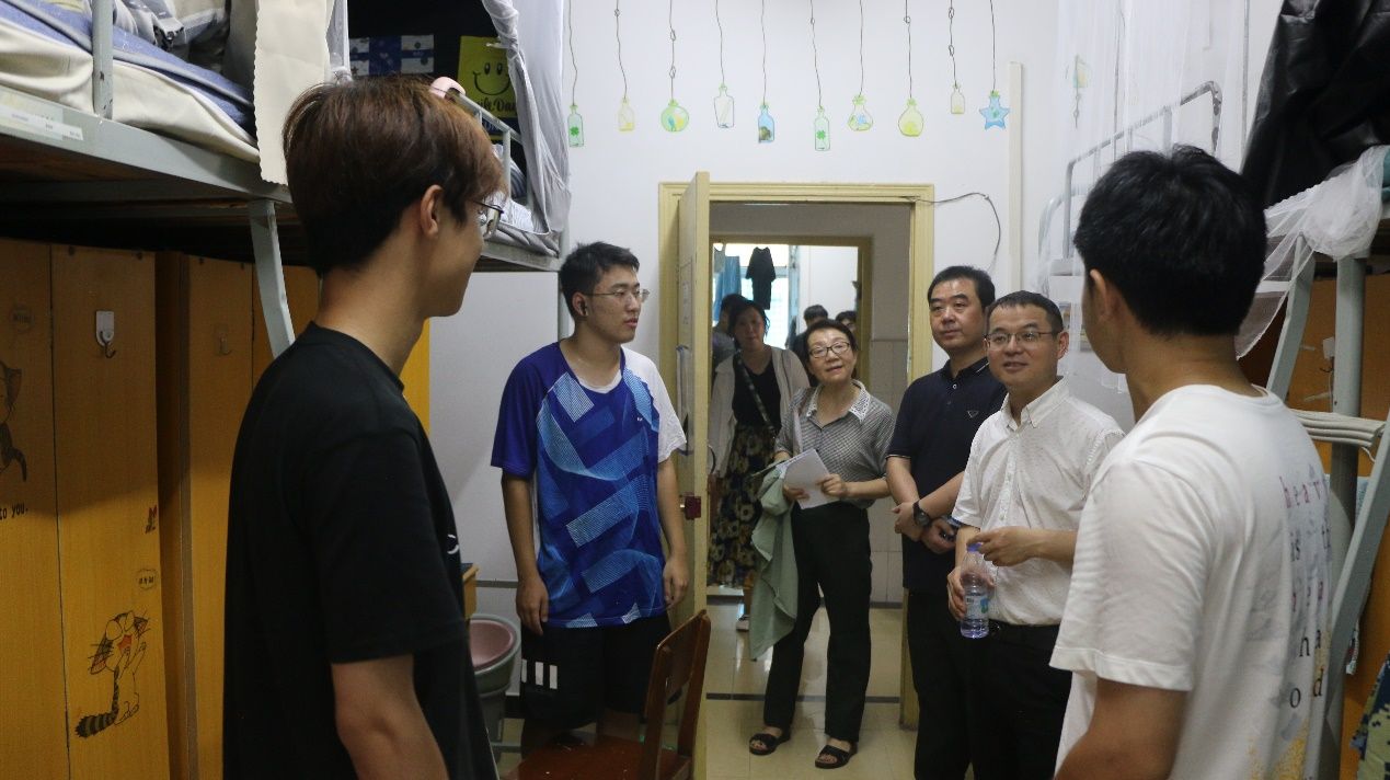 下午16:00,三公牌 院长石智雷、党委副书记俞凡、学生工作办公室主任周琼、2024级辅导员孟庆红老师、沈鹏飞老师一同走访了新生宿舍,了解宿舍环境及新生报到情况,同时与新生及家长们进行了亲切交流。在走访过程中,石智雷院长代表学院对新生们致以关心与慰问并与新生们交流初入大学的感触,勉励新生们努力学习,同时祝愿他们能够在本科四年中收获满满、更上一层楼。