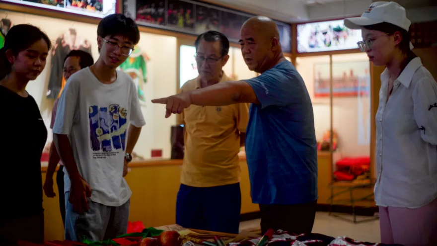 7月5日,同学们来到广东省揭阳市榕城区梅兜村,对榕義興英歌舞队的多位非遗传承人及年轻学员进行采访。从他们的讲解中,团队了解到潮汕人对英歌舞的深厚情感与独特情怀,这种自小便根植于心的文化认同, 使得舞英歌成为了许多人心中无上的荣誉。