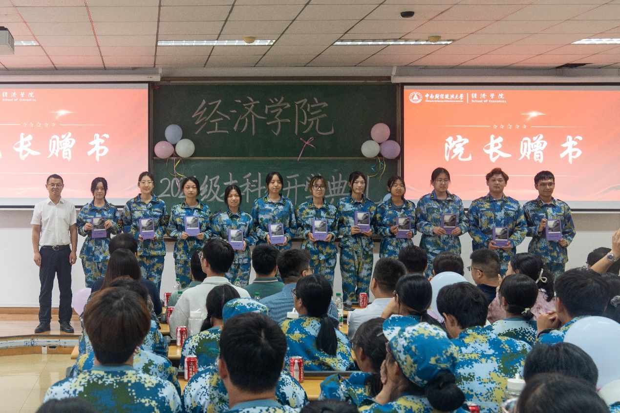 随后,石智雷院长向新生代表赠书《以自由看待发展》,此书以经济学视角解读一种特定的发展观。希望新生们保持阅读的习惯,在浩瀚书海中读有所得,学有所成。