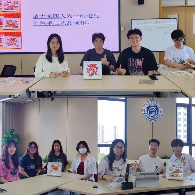此外,党员同志们还分组制作了红色传统手工艺品——竹编画。在分工协作中,大家将竹篾精心编织成“南湖红船”“盛世中华”“我爱中国”等红色主题图案,每一幅作品都蕴含着深厚的爱国情怀和民族自豪感。这一环节不仅让党员们领略了传统手工艺之美,更在动手实践中加深了对红色文化的理解和认同。
