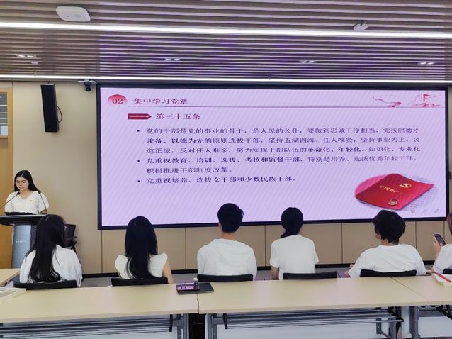 随后,工商管理学院彭永慧同学带领全体党员集中温习了《中国共产党章程》第三十五条与第三十六条,通过原原本本、逐章逐条的学习,党员们对党章的基本内容、党的组织制度、党的纪律等有了更加深入的理解,进一步强化了党性修养,提升了政治觉悟。