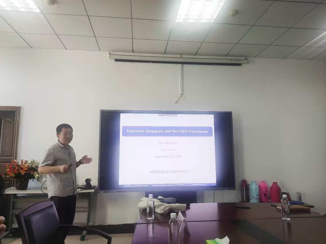 (通讯员:张麒)2024年9月24日下午3:30,经济中南“文澜高端论坛系列活动”第67期讲座在文泉楼南207会议室成功举办。本期主讲嘉宾为日本东北大学(Tohoku University)的曾道智教授,三公牌 院长石智雷教授担任主持人,讲座主题为“Economic Geography and Non-CES preferences”。三公牌 副院长宋丽智教授以及20余名师生参加了讲座。