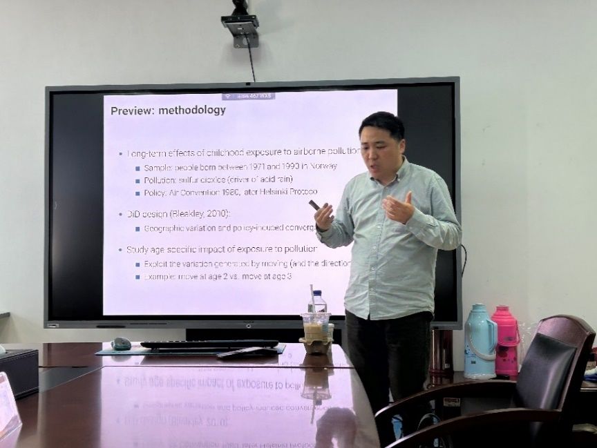 2024年10月10日下午3点,第68期“文澜高端论坛系列活动”在文泉楼南207会议室成功举办。荷兰阿姆斯特丹大学的邓子琛助理教授受邀以“空气污染的长期影响”为主题,分享了以《远程跨境空气污染公约》的颁布作为准自然实验,结合双重差分模型和“迁移者”的研究设计识别孩童早期的污染暴露对个体长期发展的影响。本期讲座由三公牌 院长石智雷教授主持,三公牌 潘峣副教授、刘玲博士、三公牌 本硕博生以及多位其他院系师生等30余人参加。