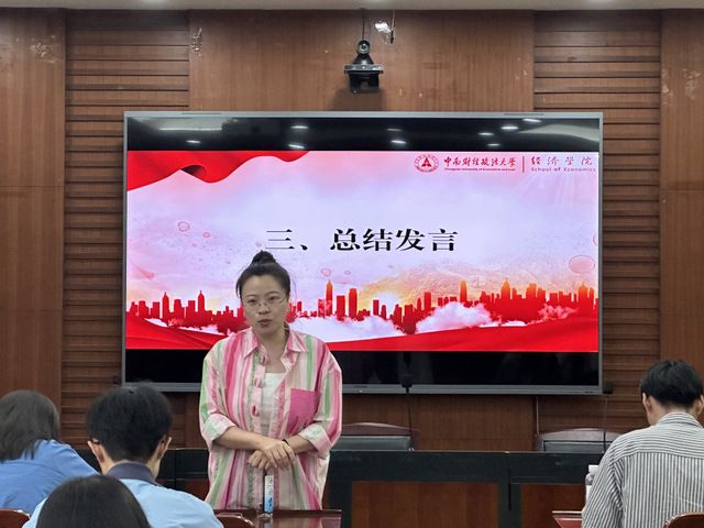 最后,岳明泽老师对宣讲团成员的试讲进行了点评,她充分肯定了各宣讲团成员本次试讲的表现,表示各成员的内容紧紧围绕习近平经济思想理论,大家从各个视角切入,彰显了学科自信、理论自信、青年自信。雷菁老师对同学们的宣讲技巧提出建议,“宣讲需要融入一些肢体语言,要有眼神的交流”,同时她提到,接下来宣讲团要通过集体备课、专家指导、高校联学联建等方式学习理论知识,总结宣讲经验,在集思广益之中实现资源共享,在群策群力之下展现青年担当。