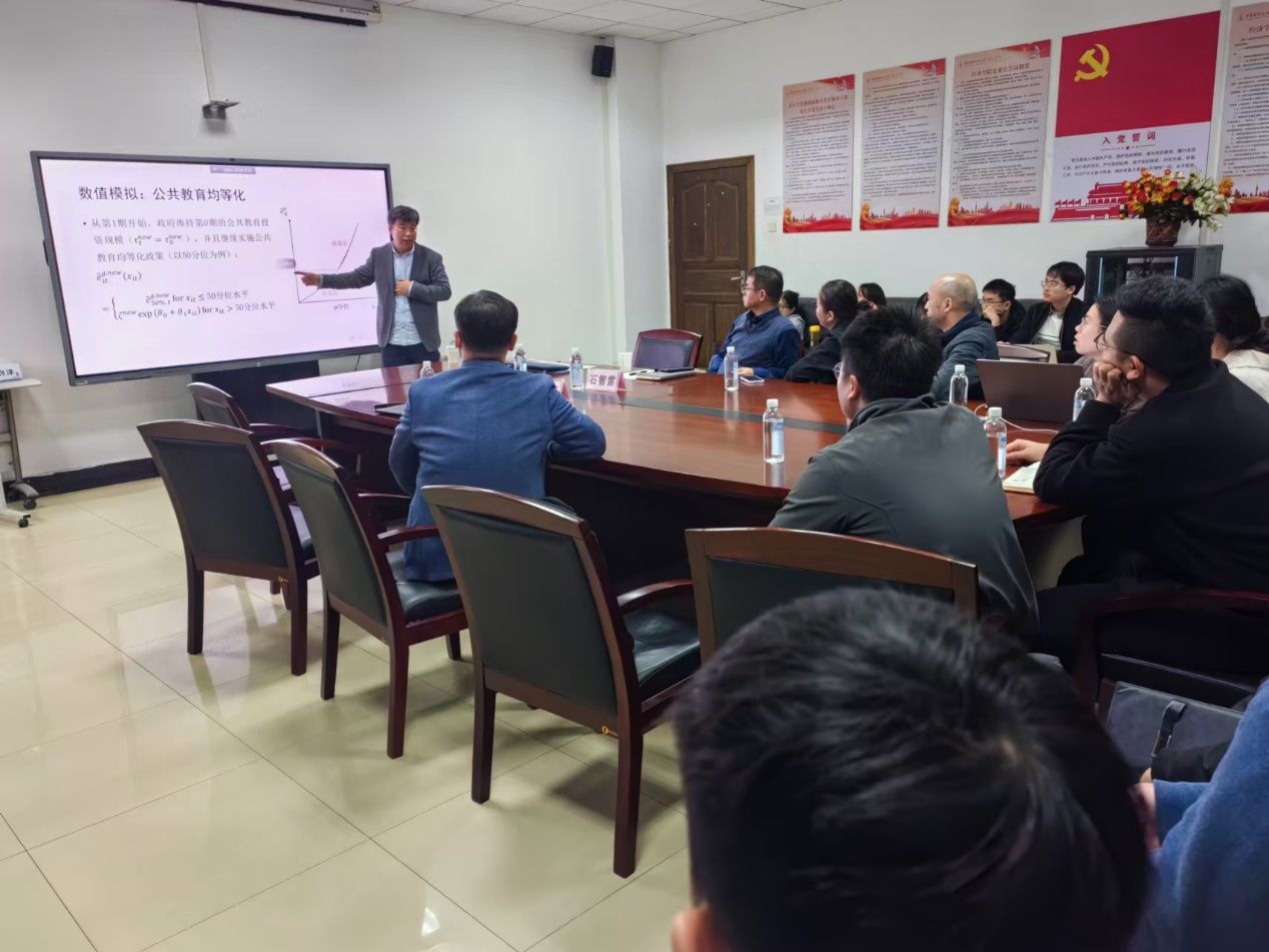 讲授过程中,在场的青年教师匡远凤副教授、刘玲博士、万千博士等,以及同学们关于模型设定、参数赋值、参数校准以及公共教育均等化的福利效应、公共教育均等化提高生育率的成本代价、对子女的生育偏好等与罗楚亮教授进行了热烈的互动和讨论,罗楚亮教授也对所有问题进行了一一回复与解答。