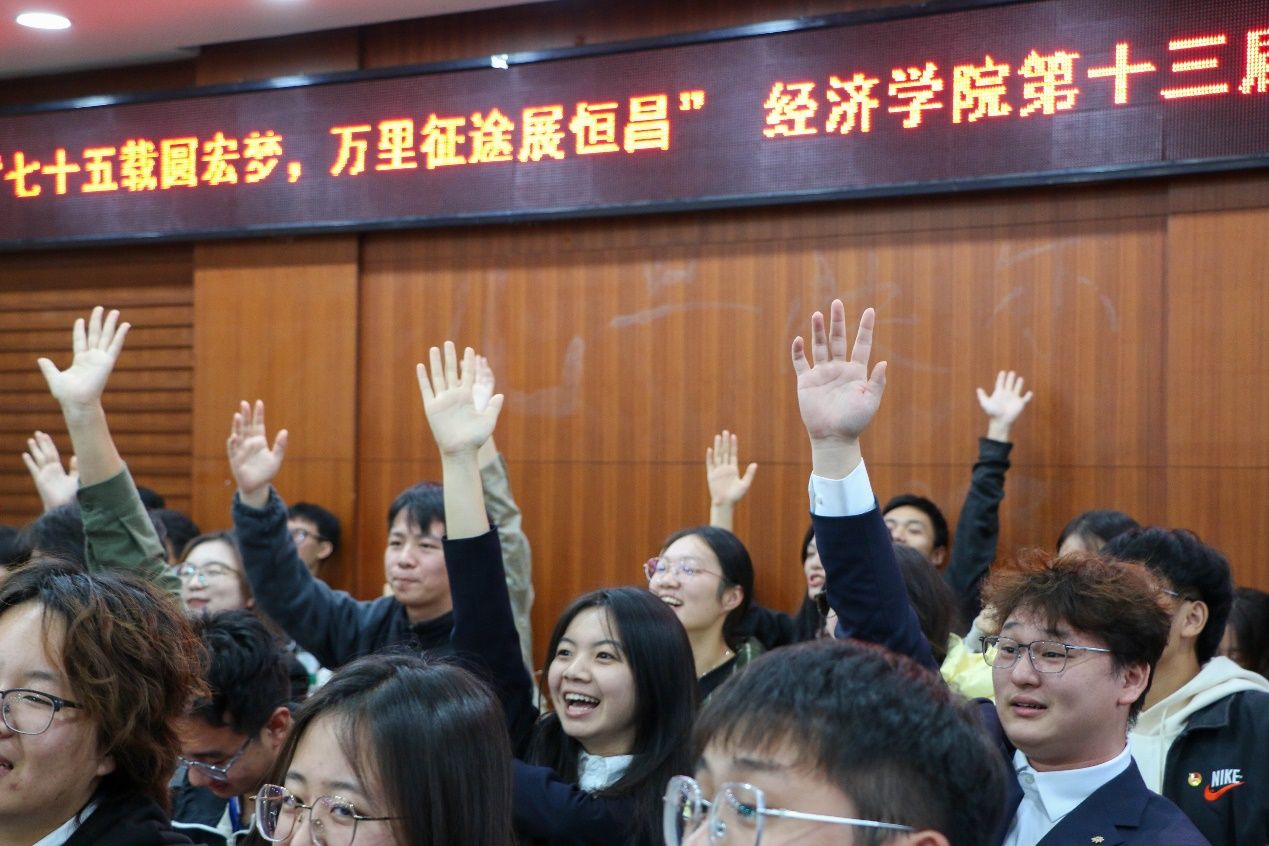 中场环节进行了两轮有奖趣味问答,同学们积极抢答,党团知识也在轻松欢乐的氛围中深入人心。