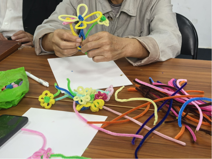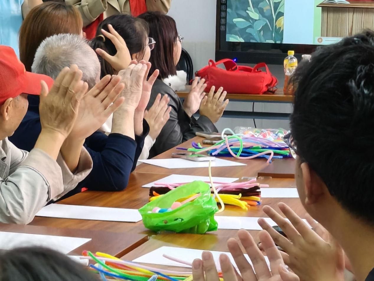 活动正式开始期间。志愿者们先带领老人们一起进行了简单的手指操来热身,激发了老人们参与到手工活动中的兴趣。随后,志愿者与老人一起进行了扭扭花的制作。老人们在各个志愿者的引导下通过自己的努力制作出了五颜六色的鲜花。在欣赏自己作品的同时,老人们露出了满意的笑容。一位老人兴致之余捏着自己的扭扭花作品高唱了一段《天仙配》。在老人们完成了手工制作后,志愿者与老人们一同欣赏了戏曲《锁麟囊》的精彩片段,一同领略了中国博大精深的戏曲文化,丰富了自己的精神世界。