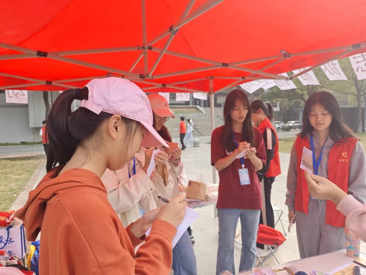 活动开始前,志愿者们齐聚物资室,齐心协力,拿上早已整理好的活动物资前往首义广场。到达首义广场,志愿者们默契分工,紧锣密鼓且有条不紊地布置好摊点。天气阴沉,但志愿者们的心依旧火热;阴云密布,但志愿者们的笑容仍旧明媚。