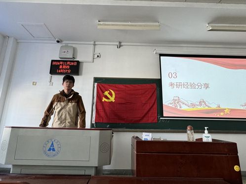 在考研经验分享环节,两位成功上岸的党员代表为大家分享了自己备考过程中的宝贵经验。从如何科学制订复习计划、如何保持高效的学习状态,到如何调整心态应对考试压力,师兄师姐们的实用建议为在场的考研同学提供了有力的指导和精神鼓励。在问答环节,党员同志们纷纷就备考中遇到的难题向师兄师姐们请教,双方展开了深入的交流与探讨,现场气氛热烈非凡,此次交流让大家收获颇丰,深受鼓舞。