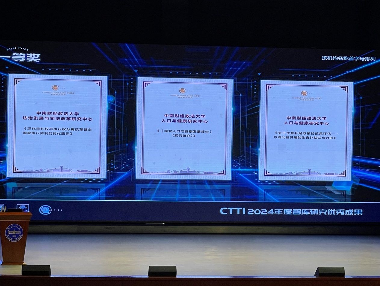2024年11月30日,由南京大学和兰州大学共同主办的“2024新型智库治理论坛”在甘肃兰州举行,会上发布了CTTI 2024年度智库建设最佳案例与智库研究优秀成果征集推介情况,人口与健康研究中心申报两项优秀成果和一项最佳案例均载誉而归。其中,《建设跨学科人口监测数据库,积极应对人口低生育率问题》荣获“CTTI 2024年度智库建设最佳案例示范案例”,《<湖北人口与健康发展报告>(系列研究)》和《关于生育补贴政策的效果评估——以湖北省开展的生育补贴试点为例》皆荣获“CTTI 2024年度智库研究优秀成果一等奖”。据悉,CTTI 2024年度智库共征集到306份建设案例,有159份案例入围智库建设最佳案例推介名单,其中标杆案例20份,示范案例45份,优秀案例94份;共征集到782份智库成果,有451份成果入围智库研究成果推介名单,其中特等奖75份,一等奖123份,二等奖253份。