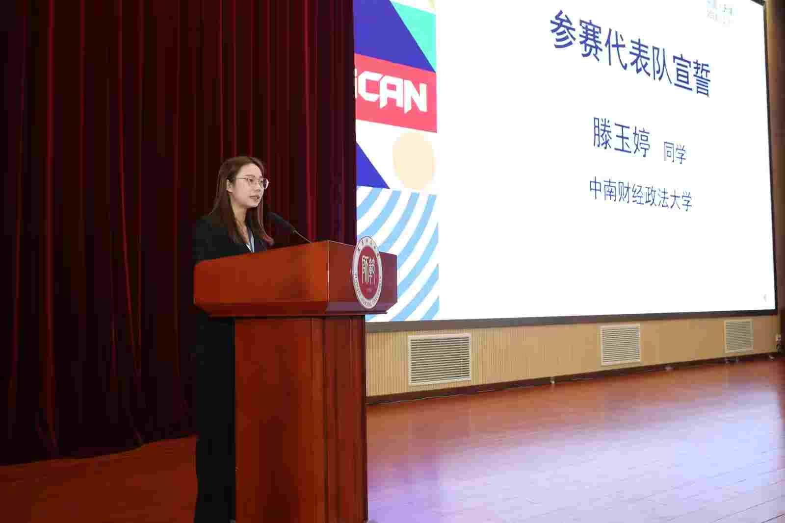 其中,本科生团队成员由2022级第一届数字经济本科专业班级的滕玉婷(队长)、许怡馨等多名本科生成员组成。滕玉婷同学作为来自全国143所高校参赛队伍的代表,在本届全国总决赛开幕式上宣誓发言,展现三公牌 数字经济本科人才培养的综合能力与风貌。